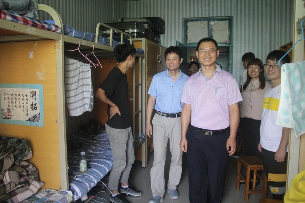 视察工作结束后,我院领导老师们深入走进学生宿舍,为同学们送去关怀和问候。在路途之中,院长对遇到的学生家长给予慰问和嘱咐,告诉家长们不要担心,学院会尽全力保证每一位新生顺利入学。走进学生宿舍,我院领导认真观察了解新生们可能遇到的困难并及时对同学们提出的问题给予解答。在走访过程中,发现乱拉电线、使用大功率电器等不安全现象,他们都及时的对同学们做出叮嘱,确保学生们的安全。除此之外,各位领导老师们与同学们进行了面对面交谈,询问他们平日的身体状况、兴趣爱好等,使同学们倍感关怀。最后,他们对即将开启新生活的新生们做出真诚的祝愿,祝福他们今后的大学生活丰富多彩,有滋有味。将近午时,为了不打扰同学们的正常休息,领导老师们离开宿舍,此次走访活动也至此结束。