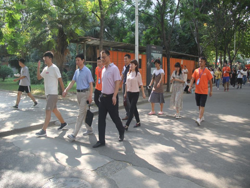 9月6日早上六点,全体迎新工作人员已全部到齐“严阵以待”。炎炎烈日下的校园每一个角落都留下志愿者们忙碌的身影。他们发扬不怕苦不怕累的精神,有的在学校门口高举院旗指引,有的在绿色通道耐心地解答家长和新生的疑问,有的忙碌着为新生办理手续,有的在家长休息区帮忙摆放行李。大家团结协作,紧张有序地忙碌。全体迎新工作人员充分发挥甘于奉献、恪尽职守,不畏酷暑,秉持着“热心、耐心、安心”的服务理念,确保每一位新生顺利办理入学手续。