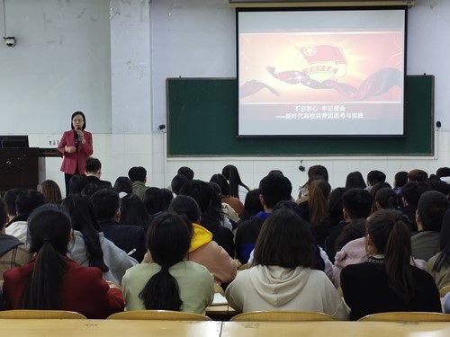 大会上,杨莉书记首先讲述了新时代高校共青团的历史使命与责任担当,她表示推动时代晴雨表的是青年人,青年人影响国家的发展,共青团是群众性、政治性、先进性的组织,是党的助手和后备军,共青团员要坚定中国特色社会主义理想信念,加强自身思想境界,提高精神力量。随后她提出青年应该树立“树立远大理想,热爱伟大祖国,担当时代责任,勇于砥砺奋斗,练就过硬本领,锤炼品德修为”的成才成长观来保持自身的先进性。接下来杨书记指出新时代高校共青团的工作方法是关爱学生、服务学生、走在时代的前沿,为此同学们要坚定信念、强化三观、勇挑重担、涵养胸怀、见贤思齐。最后本次培训在同学们的热烈掌声中落幕。