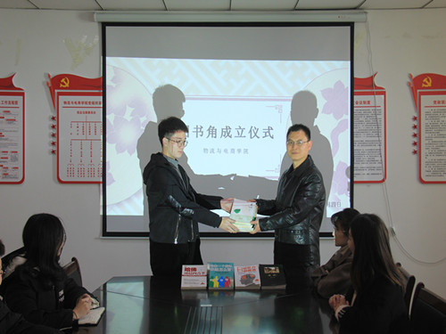 活动伊始,陈书记宣读图书角借阅管理办法,他从中提到借阅图书总则、借阅流程、注意事项和图书管理员工作职责,鼓励以借书籍为媒介,结交书友,培养阅读兴趣,实现资源共享,形成热爱读书的良好风尚。我院现结合图书角的实际情况,特制订本办法,用以增强图书角管理与维护,为同学们借阅提供便利。陈书记表示所谓书,不在形式,而在内容。书可以帮助我们拓展生命的宽度和长度、可以帮助我们在有限的生命中感受更多的丰富多彩的东西、帮助我们定位自己,定位人生和定位方向。随后党委副书记陈永刚和团学会副主席杨超杰进行了图书角阅览成立对接仪式。各位领导老师们也都表达了对图书角开办的鼓励和支持,希望更多的同学在书中找到自己的兴趣爱好,正所谓“书中自有黄金屋,书中自有颜如玉”,读书可以使我们修养身心、获得知识、开阔自己的视野、塑造自己的人生观和价值观。至此图书角成立仪式在大家的掌声中圆满落下帷幕。