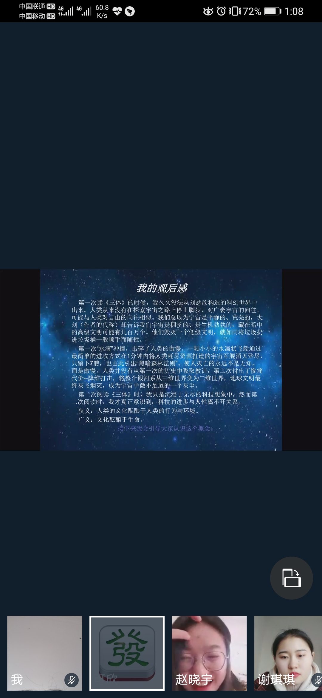此次读书坊取得了良好效果,同学们对科幻作品有了更深刻的感悟,也提高了自身的认识水平,同时营造了良好的读书氛围,推动我院线上工作的顺利开展。