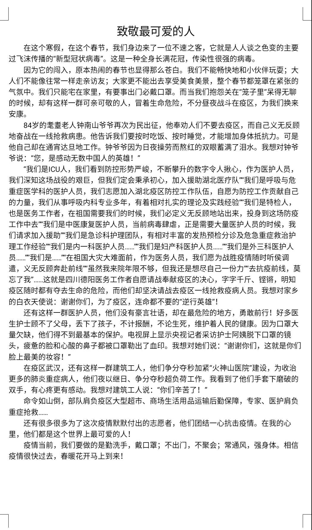 本次活动面向我院全体学生,在活动开始之前,我院已做好充分的准备并下达通知,将作品征集的通知告知于各班同学。征文要求可以是撰写生活中身边的劳动人物和故事,也可以是自己参与劳动的故事、体会和感受,包括抗疫期间劳动者们的精神和品质。我院同学积极参与,发挥自己的文采,展露自己的文笔,将日常生活和疫情期间劳动者们的劳动生活描写的绘声绘色,同时也表达出自己对于劳动的看法和态度,大家一致的观点就是劳动是一件幸福而美好的事情。征文作品内容是十分通透的,作品透露的思想是十分想通的。此次征文活动也取得了良好的预期效果。