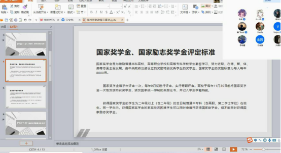 在宣讲中,“学生资助宣传大使”初步调查了一下同学们对国家资助政策的了解情况。大多数学生只知道大学里有奖学金,但并不知道分为高校内部奖学金、国家奖学金、国家励志奖学金。部分同学更没有听过生源地助学贷款、国家助学金、“绿色通道”、勤工助学等。“学生资助宣传大使”们便系统的向同学们介绍了国家资助政策包括:国家奖学金、国家励志奖学金、国家助学金、国家助学贷款、勤工助学、“绿色通道”等。