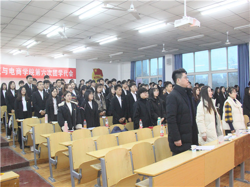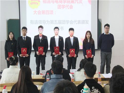 大会开始,全体师生起立,面对国旗,共唱中华人民共和国国歌。伴随着庄严的国歌声,此次大会拉开了序幕,在上一届学生团委副书记杨楚致开幕词后,团学代表大会正式开始。首先,由我院团委副书记王雪冰做工作报告。在报告中,王书记回顾总结了过去一年中团学会的工作及各部门和各社团的优良成绩,并对往届学生会干部们的辛勤工作给予了充分的肯定。接着,王书记发表了讲话,他希望我院的学生干部能够保持优秀的作风,用良好的心态去迎接往后的学习和工作。随后,由王书记、刘阳老师、尚津老师为上一届团学代表颁发聘书,并一同合影留念。