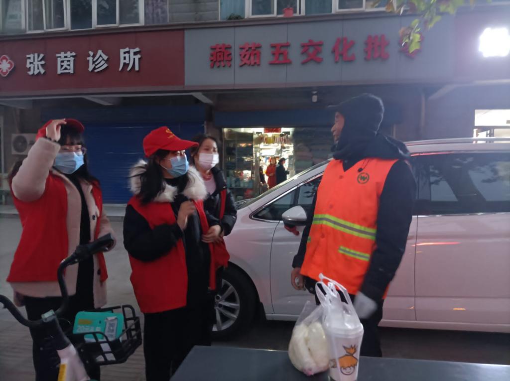 城市熙熙攘攘的人群和匆忙的脚步声,总在不经意间埋没他们的付出,为表达当代青年学生对环卫工人们的感谢,让他们不再感觉到冰冷和孤单,我院社会实践部成员为辛勤工作的环卫工人送去一杯暖透手心的早餐。身穿红色马甲的志愿者们手提早点,在严寒中携手并进,全心全意为环卫工人们送去特别的温暖。在清晨的街头,为辛苦工作的一线工作者们献上一份温暖早餐,冒着热气的早餐与寒冷的清晨形成鲜明的对比,传递到指尖的温暖,让一线工作者们感受到了严寒中的丝丝暖意。此刻,这一份平淡无奇的早餐,在他们眼中,也成了超越山珍美味的珍肴。我院志愿者们用温暖拉近彼此之间的距离,用守护陪伴彼此前行,用爱与一线工作者们在寒冬中并肩前行。