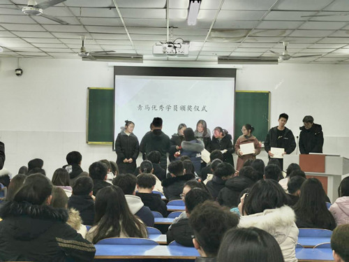 为了嘉奖青马工程培训中表现优秀的学员,激励学生干部认真工作、学习,williamhill英国于12月15日晚6时30分在E206教室举行青马工程培训会优秀笔记颁奖仪式,我院全体团学会干事以及20级各班班干部参加本次颁奖仪式暨团学会周例会,williamhill英国团委副书记王雪冰出席本次颁奖仪式并对优秀学员进行颁奖。