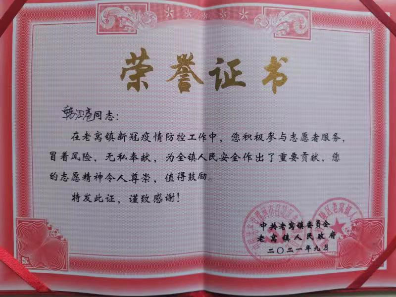 “疫情就是命令,防控就是责任”,韩汇港同学在疫情暴发之际,踊跃报名参加志愿服务,在当地党委、政府的统一指挥下,组成抗疫逆行的“红马甲”,有序参与疫情防控工作,筑起抗击疫情的“安全防护墙”,书写新时代的青春担当。
