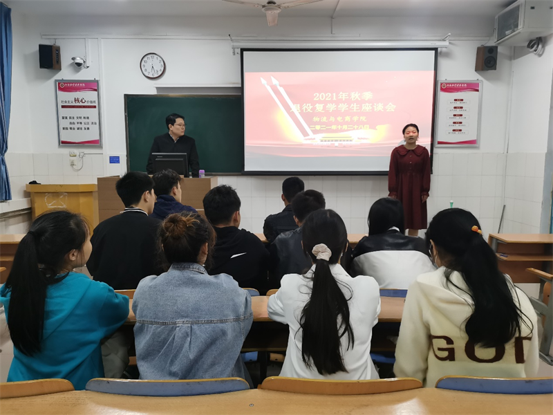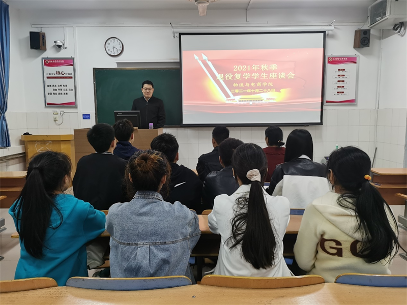 此次座谈会旨在帮助退役复学的同学们解决复学后在学习、生活等方面遇到的问题,同时团结带领全体同学坚定理想信念,不忘初心、牢记使命,为学院的发展贡献自己的青春力量。