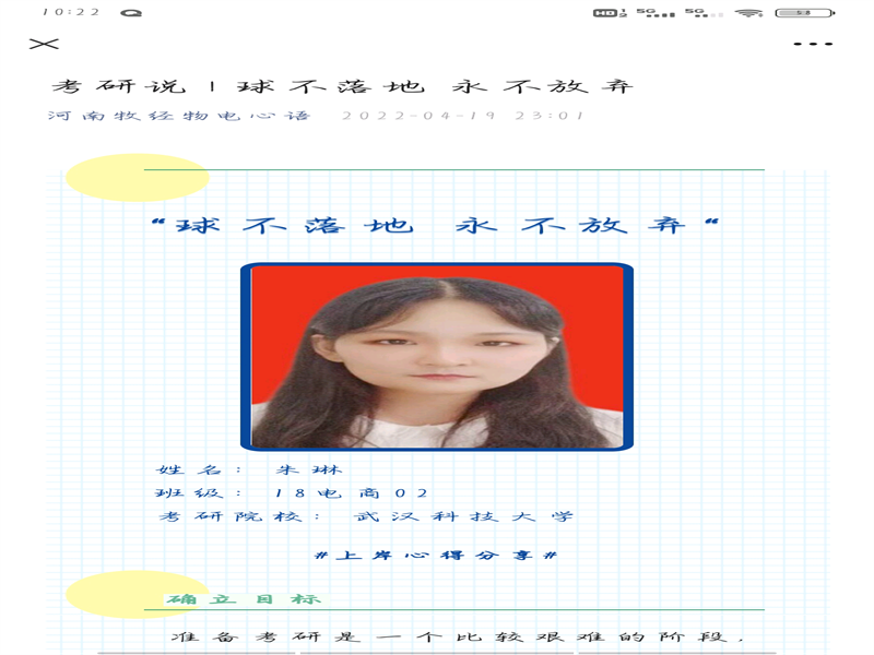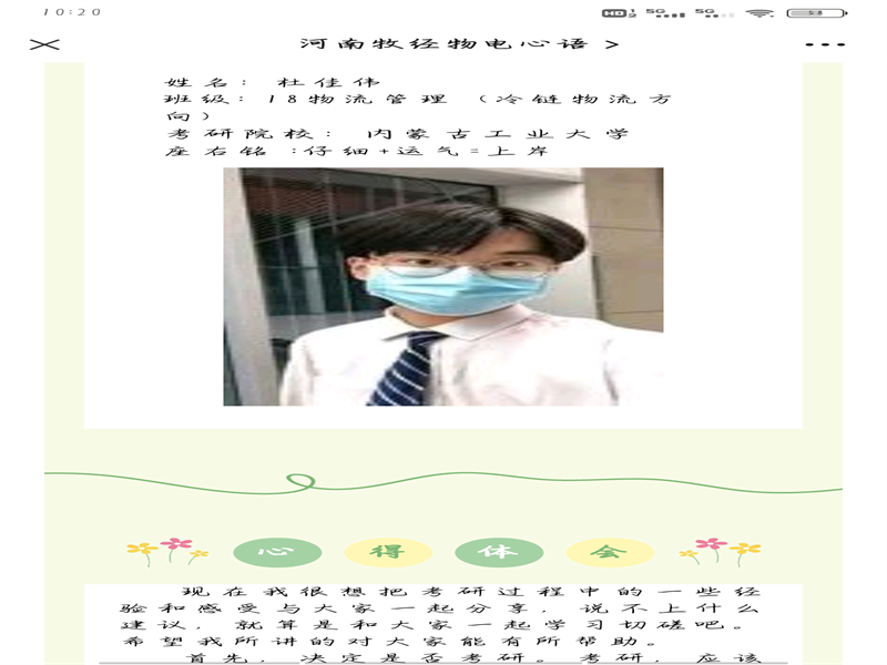 本次考研系列讲座由我院就业专干刘阳老师组织安排,各个毕业班辅导员积极动员本班上岸学生参与讲座分享,创新创业服务中心全体成员全程服务。今年我院2022届考研上线人数50人,目前录取人数为26人,成功上岸的学生录取院校大多为一志愿院校,说明我院考研上岸学生在院校选择上深思熟虑,结合实际情况且复习充分。在考研系列讲座举办前,我院做了充足的前期准备工作,收集每位成功上岸同学们的考研心得、个人照片及学习笔记等照片整理成系列推文——“考研说”,并根据考研情况进行分析、总结及时发布在我院河南牧经物电心语公众号上进行推送,便于广大学生进行阅读和学习。通过前期考研心得的收集和让学生准备考研经验分享的PPT,使得此次考研系列讲座得到了众多有考研意向学子的关注。讲座期间,12位上岸同学分别从不同角度向大家介绍了考取研究生的意义及就业前景,为我院学子解读“考研”这二字的含义,为大家理清考研动机、讲解考研重点。通过举例和分析历届录取分数线鼓励大家确立目标,积极备考,帮助大家认清当前的考研现状,并就如何择校选专业、如何准备研究生各阶段考试、如何安排学习时间上提出了很多建议。在线上讲座的自由提问环节中同学们也就考研备考资料、时间分配等问题虚心求教,各位上岸同学均悉心解答,并给出针对性的参考建议,对打算考研的学生带来了很大的帮助。在疫情防控形势下,四场“云”端分享,带来了满满的干货经验,创新创业服务中心成员在线录制四场讲座进行整理保存,并及时发送到各班群中供同学们观看回放,做好后续的帮扶服务工作。为更好的指导服务之后的学生考研和就业,我院根据今年考研情况,准备撰写2022届毕业生考研分析报告,发放了面向大一到大四学生不同类型的考研调查问卷,通过问卷调查和实际采访进行考研情况分析,以便了解我院不同年级学生的考研需求,健全日后考研精准帮扶工作及职业技能培养机制。