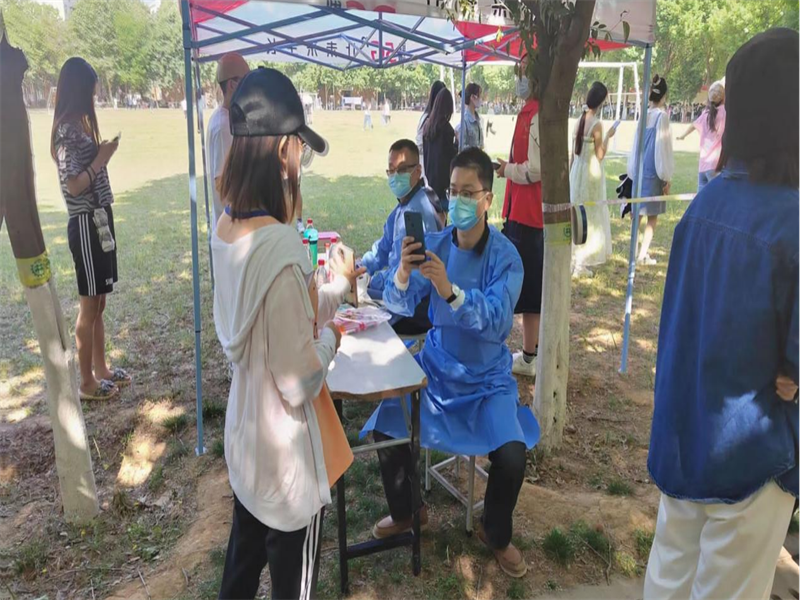 疫情突起,号令下发,招之则战,战必有我。在学校进入疫情防控战时状态后,任佳佳老师主动请缨,与学院防控专班的成员一同吃住在学校,积极参与到核酸检测、统计汇总、服务家属院教工的志愿服务中。维持核酸检测秩序、登记录入开箱码、扫码、处理废弃物……任佳佳老师和志愿者老师一起保质保量的完成了疫情防控的各项工作任务,在工作中积极补位、毫无怨言、坚守岗位,面对每天高强度的工作毫不退缩,始终带头站在最前列、冲在第一线、不分昼夜、全情投入,与学院党员志愿者共同筑起一道严密的“红色防线”。