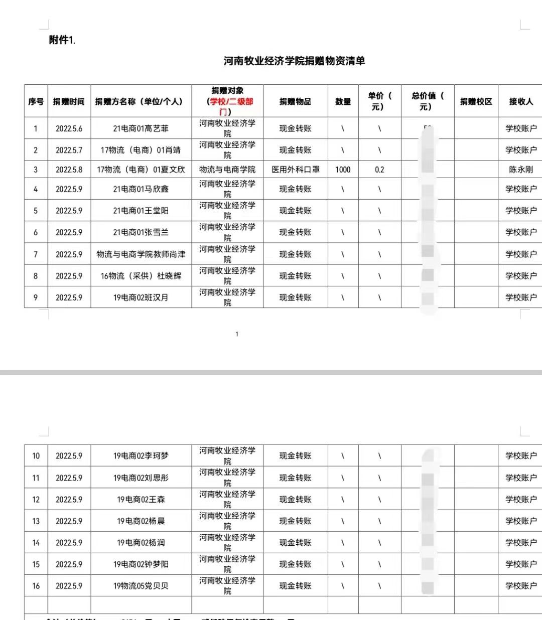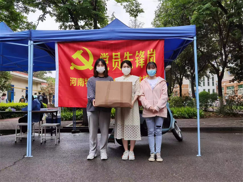 自5月份以来,郑州市疫情不断恶化,新增无症状感染者和新冠肺炎确诊病例日趋增多。面临如此严峻的形势,我校紧急采取疫情防控措施,师生分工明确,落实到位,老师们坚守在前线,帮助学校运输物资,在核酸检测中担任志愿者以及不定时巡查校园;学生们则在课余时间也当起了志愿者,组织学生有序进行核酸检测,为校园防控出一份力。当即最需要解决的是疫情防控储备物资日渐减少的问题,面临这种困境,不少学子纷纷伸出援手,踊跃捐献,提供了资金、口罩、护目镜等,帮助学校度过难关。