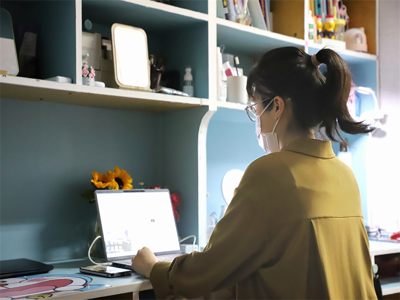 日夜坚守筑防线,守望青春克时艰。在疫情发生以来,刘阳老师不仅主动住校陪伴学生,与学生同吃同住,而且积极报名核酸志愿者、校园文明督导、宿舍和食堂维持秩序、给学生发放食物和中药等志愿工作。同时,每天走访寝室,与学生谈话,关心学生身心健康,并对大三考研学生和大四就业学生进行一对一指导,通过大四学生现状提前做好大三学生的考研和就业指导,减少疫情对学生就业的影响。她天天起得早,却往往睡得晚,又是匆忙吃一口饭,又投入了下一项工作,把自己的日子过的仓促,却在努力把学生的生活护得周全。