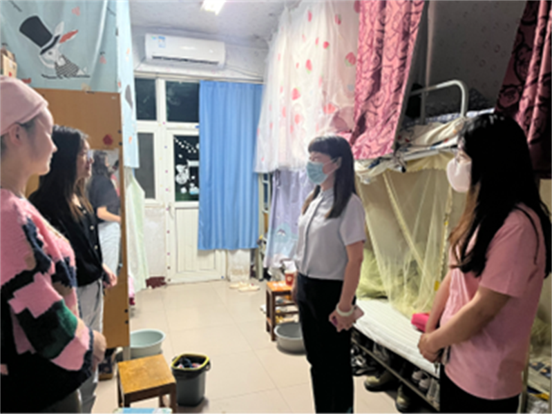 走进宿舍,李院长和马老师亲切地询问了学生期末复习的情况,并叮嘱同学们要做好期末复习规划,遵守考试纪律,诚信应考。老师们也了解了同学们近期期末备考的压力,鼓励同学在认真备考的同时也要注意适当休息与放松,学会劳逸结合,以良好的精神状态迎接接下来的考试周。在走访过程中,老师们也提及了学生宿舍卫生,以及消防安全、用电安全等问题。最后,李院长还提醒同学们要提早订好车票,返家途中要做好个人防护,非必要不前往中高风险区。在走访的过程中,老师们不仅深入地了解了同学们各方面的情况,拉进了学院老师与学生之间的交流与联系,增进了师生情谊,而且进一步增强了同学们对疫情防控、宿舍生活、消防及用电安全的认识。