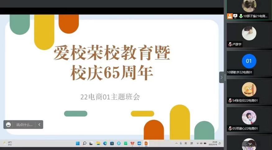 丹桂飘香,秋风送爽,又是一年迎新时。为了更好地进行新生的思想引领工作,树立良好的作风学风,9月19日晚,williamhill英国组织开展了“爱校荣校教育暨迎校庆65周年”新生入学教育线上主题班会,本次主题班会主要围绕学校的历史文化、办学理念、斐然成绩等方面,帮助新生了解校史校情,熟悉学校及学院的专业设置和职业发展优势。