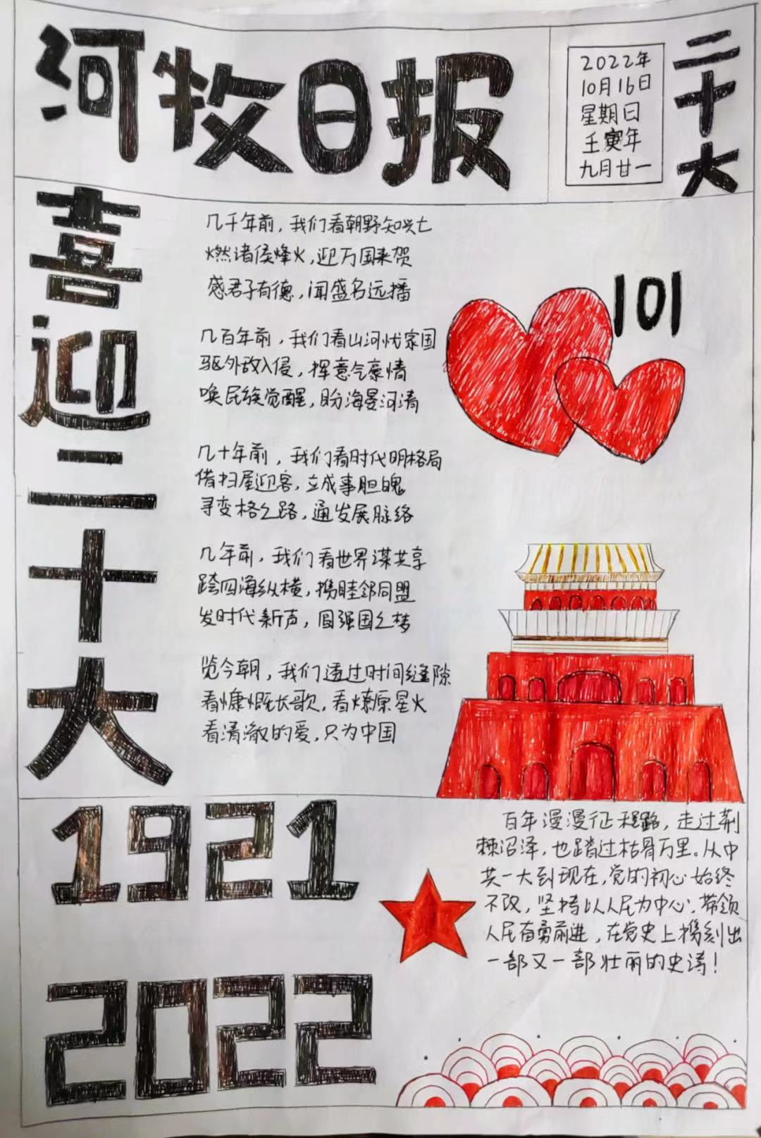 本次活动的开展,使我院学子深刻学习了党的二十大的重要思想,进而明确了作为承载着国家重大期望的新青年、大学生们应该朝着什么方向前进,怎样前进,为实现中华民族伟大复兴的中国梦而不懈奋斗。岁月不居,未来可期,希望通过本次主题手绘海报活动,广大同学能够以梦为马,不断探索,用不畏艰苦的奋斗、崇尚实干的担当和开拓进取的创新继承、奔赴伟大梦想。