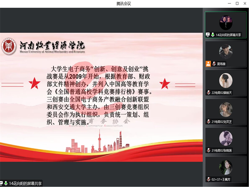 为促进我校学生全面发展,提高个人创新能力,在校团委的指导下,我校电子商务协会于2022年10月20日15时在线上举办了“三创赛分享会”,协会指导老师殷猛出席了此次线上会议,我校同学积极参与会议。