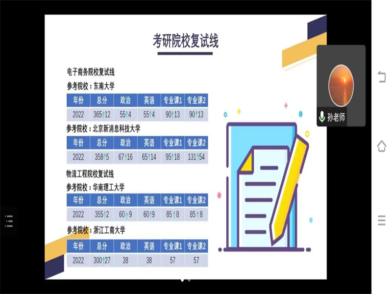 为了进一步提高学生的考研热情,明确考研目标,掌握相关考研技巧,了解更多考研信息,助力同学们更加高质量的考研,让本就具备上岸能力的“河南考生”激发提分能力,11月8日19:30—21:00,williamhill英国于腾讯会议开展考研公益讲座。本次讲座邀请到工业工程硕士,北理工在读博士孙丽宁老师作为主讲,20级全体同学和22级专升本同学积极参与,科创部干事贾冰冰为主持人。