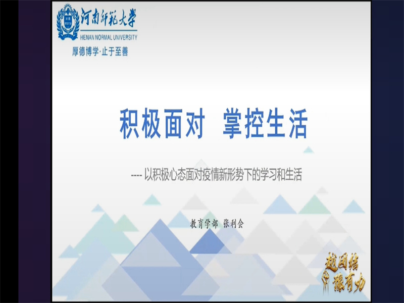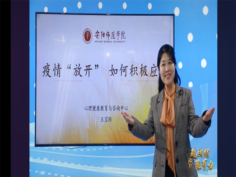 本次直播共邀请了4位主讲教师,分四个主题,为同学们进行心理疏导,排除焦虑。第一个主题是“接纳焦虑,拥抱阳光”,由河南大学教育学部心理学院教授王瑶老师主讲,王瑶老师向同学们解释了焦虑是面对未来未知、不确定性的情绪体验,并说明了焦虑情绪人人都有,告诫同学们要学会体验成长中的焦虑情绪,鼓励同学们在当前疫情形势下,张开双臂,拥抱阳光;第二个主题是“自我成长,从心开始”,由河南大学第一附属医院医学心理学教研室主任马宁老师主讲,马宁老师对新形势下大学生的心理问题进行识别和处理,指出了大学生常见的心理问题主要是由“焦虑、疑病、恐惧、不确定感、媒介性替代创伤”几个方面所造成的,接着又为同学们提出了“认知调节法、行为训练法、身心放松法、”三种自我心理调试办法结束了第二个主题的宣讲;第三个主题是“积极面对,掌控生活”,由河南师范大学讲师张利会老师主讲,旨在鼓励同学们以积极的心态面对疫情形势下的学习和生活。张利会老师告诫同学们:第一,要避免长时间阅读负面信息,多看正面信息;第二,要学会转移注意力,可以通过运动、听歌、看电影等方法来转移自己的负面情绪;第三,要积极认识重评,提醒我们引起我们情绪的并不是事件本身,而是我们对这件事的看法,第四,要建立自己的社会支持系统,从而产生依靠感和幸福感,紧接着,张利会老师教会了同学们可以通过“保持规律作息,作好时间管理、记录生活喜事、多做利他行为”来让生活步入正轨,意义匪浅;第四个主题是“疫情‘放开’,如何积极应对”,由安阳师范学院心理健康教育与咨询中心主任王宝玲老师主讲,王宝玲老师让同学们更加明白了在疫情“放开”的当下,也要做好个人防控,避免焦虑,乐观面对。