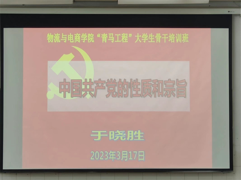 会议伊始,进行了青马工程开班仪式。团学会全体成员起立奏唱中华人民共和国国歌。接着,由陈永刚书记宣读培训方案,申作光书记宣读培训的相关要求,杨雪老师宣读培训课程安排,学生代表冀艺星同学代表团学会成员上台发言,最后于晓胜书记为开班仪式致辞。书记和老师们对同学们的谆谆教诲体现了对此项工程的重视以及对团学会成员寄予的厚望,相信通过此次青马工程的培训,我院学生干部综合素质和工作能力会得到进一步的提升。开班仪式结束后,于晓胜书记为我们做了关于中国共产党的性质与宗旨的主题讲座,于晓胜书记慷慨陈词,激情演讲,同学们更是全神贯注的听讲。在于晓胜书记的演讲中,同学们都受益颇深,并在今后的学习、生活以及工作中,更是起着警醒作用。