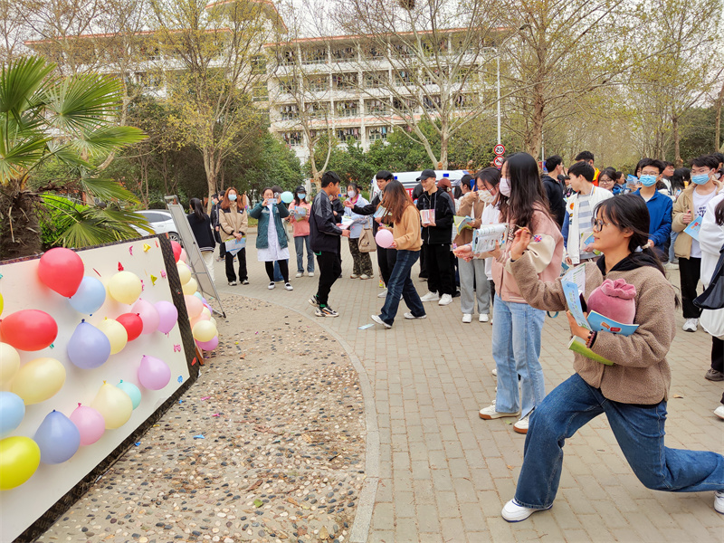 活动期间,我院志愿者协助发放宣传单和宣传品,配合郑州市第三人民医院提供现场健康咨询。现场有背景墙签名、有奖游戏答题及击破气球小游戏等活动,并配置了丰厚的奖品。志愿者负责维持活动现场秩序,提醒同学们不要乱扔垃圾并为气球充气,保证活动道具的充足。活动结束,志愿者们协助其收拾桌椅板凳,捡拾地上垃圾,保持了场地的整洁。