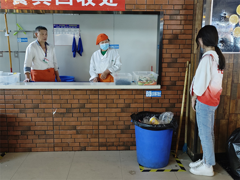 活动伊始,社实部相关负责人员带领志愿者们到餐厅指定位置集合,并为其发放志愿服,随后,按照计划将志愿者分为四组并安排相关工作,志愿者们站在餐厅各个出口处,进行文明督导,营造反对铺张浪费,厉行节约粮食的氛围,社实部工作人员监督志愿者履行职责,提醒志愿者切实负起责任,认真工作。活动最后,全体志愿者与工作人员合照留念,有序解散,本次活动圆满结束。