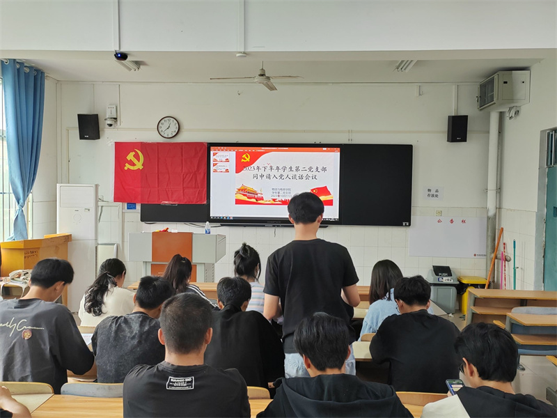 为了进一步了解入党申请人对党的认识及入党动机,让入党申请人进一步从思想上、作风上、组织上入党,树立坚定的政治信仰,加强自身修养,williamhill英国学生第二党支部于10月11日12:20在教学楼B202召开了同入党申请人谈话会议。学生第二党支部书记刘阳出席会议,学生第二党支部2023年下半年入党申请人参加此次会议。