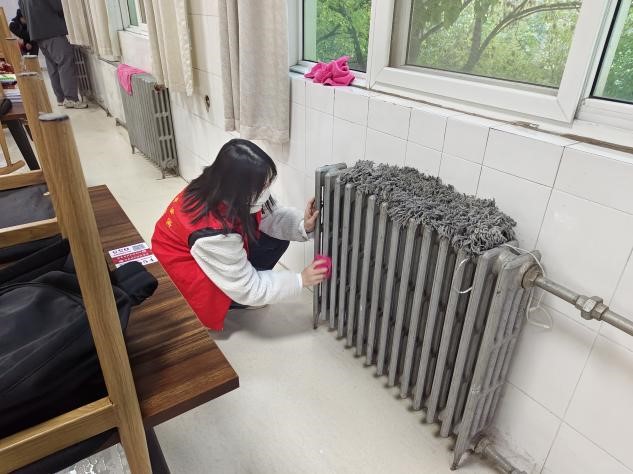 学员们统一穿着志愿服,集合后有序来到图书馆二楼南阅览室,通过与图书馆老师的沟通,老师们为学员志愿者们提供了一些必要的清洁工具和保洁物资,随后,学员们根据预先分配的任务,分成若干小组,分别负责不同的区域。先是集中打扫图书馆内部的设施卫生,包括清理桌面上的垃圾、擦拭窗户和暖气片、清扫电风扇扇叶等等。志愿者们穿着统一的工作服,手持工具,有条不紊地进行着清洁工作,紧接着是拖地、扫地。志愿者们认真负责,积极投入,充满热情地完成了各项任务,使得图书馆的内部环境焕然一新。通过本次打扫图书馆清洁整理的志愿服务实践活动,我们不仅为图书馆提供了一个干净整洁的环境,也为学习氛围带来了可见的改善。学员志愿者们在活动中充分发挥了团队合作的精神,用行动诠释了公益和奉献的真谛。只有通过每个人的共同努力,才能为校园创造更美好的环境。这次活动不仅使学员们感受到了团结和友爱,也增强了学员们对校园的归属感和责任感。