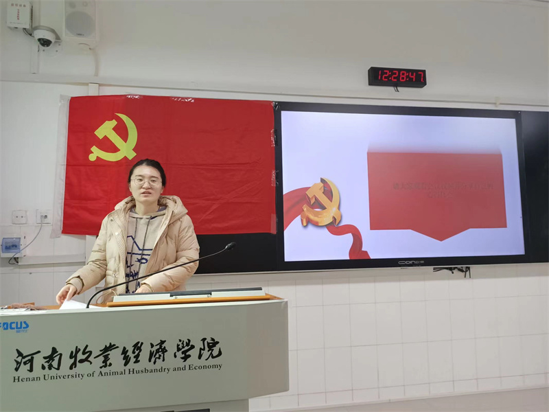 学生第三党支部薄佳林同志结合党的二十大报告领学了《求是》杂志发表的习近平总书记重要文章《开辟马克思主义中国化时代化新境界》的主题内容,分别从“两个行的理论逻辑、两个结合的根本途径、六个必须坚持的世界观和方法论”三个方面深入学习。杨雪老师在会议总结中,鼓励学生党员认真学习党的二十大报告等相关知识,并结合自身实际进行心得分享。