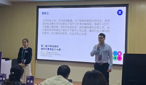 本次大赛共有来自全省130所高校的135名辅导员参与,王雪冰老师历经初赛复赛的优秀表现层层筛选顺利拿下奖项。由于参与本次大赛的准备时间较为匆忙,仅有一周的准备复习时间,王老师便在紧张的工作之余抽空进行了学习。王老师说:辅导员能力大赛获奖不是靠临时的复习,而是把工作做在平时,为了充分照顾到每个学生,工作忙的时候经常会睡在办公室里。而正是因为他平时把学生工作一直放在心上,尽职尽责,为学生的各项活动奔波进行指导,才能在一众辅导员中脱颖而出,一举拿下大奖。