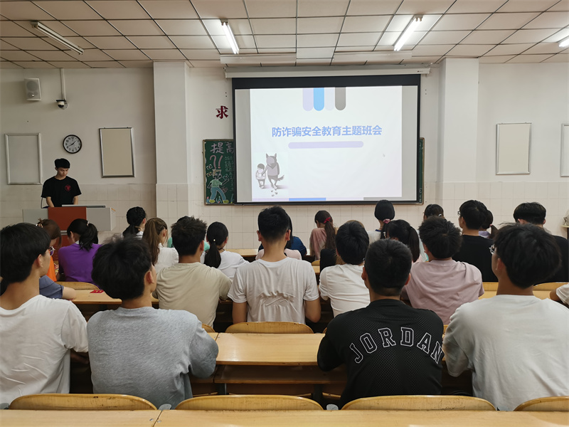 活动前期,由生活部成员编写通知并督促各班生活委员召开班会。本次活动由各班生活委员收集反诈骗的真实案例、预防手段以及补救措施等素材来制作活动所需PPT。活动过程中,各班生活委员通过召开班会来向同学们普及反诈骗相关知识,根据不同的案例来帮助同学们了解各类诈骗的共性,并提供各种解决方案提高同学们的应对能力,耐心解答同学们提出的关于反诈骗的相关问题。同时,生活部成员及时关注各班班会进展情况,必要时提供帮助。活动后期,生活部成员收集各班生活委员制作的PPT以及班会时的照片并对其进行汇总。