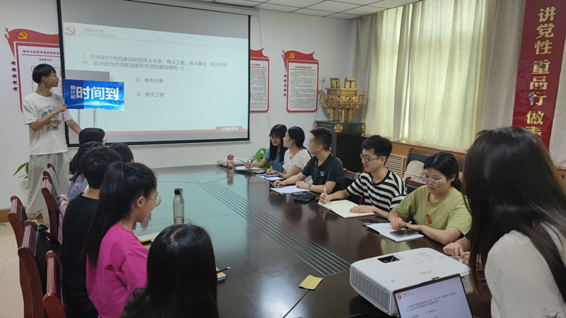 为庆祝中国共产党成立100周年,重温党的光辉历程,继承和发扬党的优良传统和作风,进一步巩固“不忘初心、牢记使命”主题教育成果,6月23日中午12点,williamhill英国于教学办公楼312举办“学习强国党史知识竞赛”学生第一党支部特色活动,学生第一党支部书记尚津老师、党小组组长王雪冰及全体在校生党员参加了本次活动。