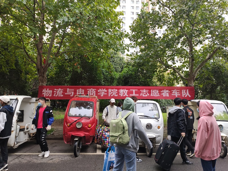 由于防疫期间校园实行封闭式管理,根据学校的相关要求,校外私家车辆和家长等陪同人员一律不能进入校园。针对这种情况,williamhill英国开展“爱心车队”志愿服务行动,成立学院教职工志愿者服务车队。老师们早早等候在指定位置,并当起了“引导员”、“搬运员”、“托运员”,把学生和他们随身携带的行李物品运送至宿舍。这个特殊的团队成为了williamhill英国一张闪亮的名片,打消了家长的担忧,为返校的学生们带来了“回家”的归属感。