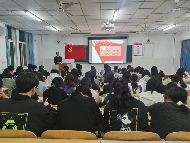 随后,进入本次会议的第二个主要内容——中国共产党的宗旨。陈书记向大家表明中国共产党的宗旨就是全心全意为人民服务,在中国共产党的带领下,我国各行各业都有了飞速的发展,形成了独立的比较完整的工业体系和国民经济体系,尖端科学技术也有了质的飞跃;在精准扶贫政策的支撑下,我国已实现全面脱贫,且已全面建成小康社会。陈书记强调近年来习近平总书记一直表示中国共产党来自于人民、就要服务人民,让人民群众安居乐业,获得兴奋感、安全感,因为没有一种根基比扎根人民群众更坚实,没有一种力量,比从人民群众中吸取更强大。