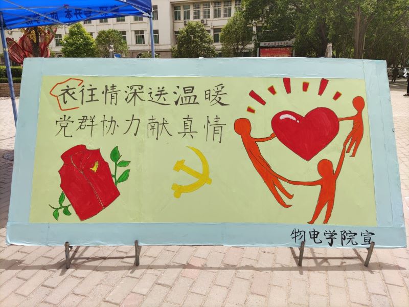 在中国共产党成立100周年到来之际,为了提高我院广大党员的党员意识和增强支部活力,在志愿服务中锻炼素质能力,4月22日下午14时30分,williamhill英国组织开展以“衣往情深送温暖,党群协力献真情”为主题的党日活动。院长曹献存、党委副书记陈永刚、副院长李艳菊的带领下,我院全体教工党员佩戴党员党徽来到活动现场红色花蕊处积极参与此次党日活动。