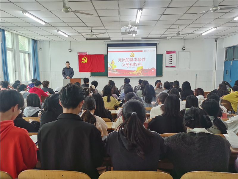 党课开始,杨奇奇老师从党员的基本条件展开论述,他强调中国共产党党员是中国工人阶级的有共产主义觉悟的先锋战士,全心全意为人民服务是党的根本宗旨,身为党员应时刻认识到自己永远是劳动人民中的普通一员。接着,杨奇奇老师分别从两个方面向同学们介绍了党员的八项义务和八大权利,他提出,党员应时刻牢记并坚决履行自身义务,认真学习、深入贯彻党的各项方针、政策,克己奉公,多做贡献,带头践行社会主义核心价值观,充分发挥党员的先锋模范作用。与此同时,党员也应依法正确行使自身权利,以维护党的组织原则为主,保证全党在行动上的一致。会议最后,杨奇奇老师也对在座的各位入党积极分子提出殷切期望,他希望各位同学能坚持党员权利和义务的统一,做到因时而变、顺势而为,积极承担起新时代的责任,立足本职勤勉作为,脚踏实地砥砺前进。至此,本次党课在同学们热烈的掌声中圆满结束。