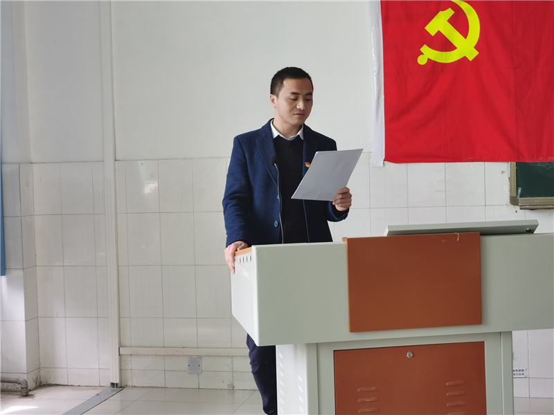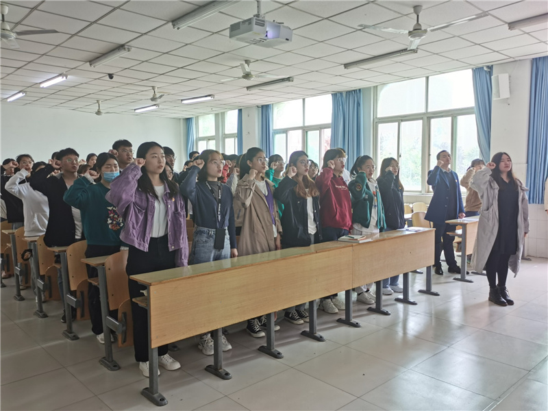 本次誓师大会主持人为梁亚鑫同学。会议第一项:奏唱国歌,全体学生党员在庄严的国歌伴奏下歌唱对祖国的爱与深沉。会议第二项:由学生第三党支部书记胡可鑫老师领学《关于在迎评促建中更好发挥各级党组织和学生干部作用的意见》,胡可鑫老师强调我校正处于迎评促建的重要阶段,学生党员作为党和学校发展的主心骨与重要建设力量,要发挥好学生党员的模范带头作用,引领其他学生遵守学校规章制度,一起为评估做贡献。会议第三项:由学生第一党支部书记尚津老师带领学生进行宣誓,让学生党员铭记自己身为一名党员,就应当在本科评估期间以崭新昂扬的面貌、积极向上的心态去为院争光、为校争光。