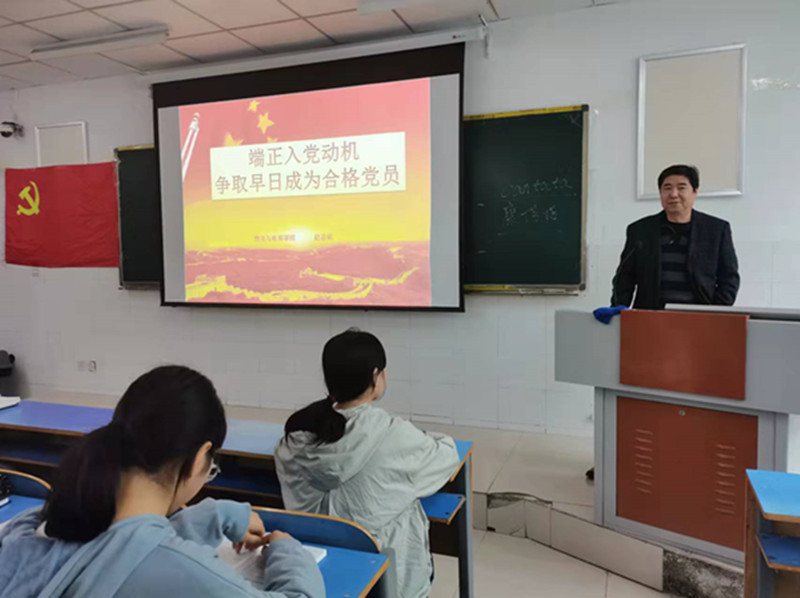 党课伊始,赵老师向同学们问到,什么是正确的入党动机,在听完几位同学的发言后,赵老师根据发言对几种入党动机类型进行总结,并指出了正确的入党动机应是忠诚地信仰共产主义,把最终实现共产主义社会制度作为自己的最高理想,决心为了共产主义事业奋斗终身,全心全意为人民服务。接着,赵老师分别阐述了端正入党动机的原因和途径,如何按照党员的标准严格要求自己,认真学习习近平新时代中国特色社会主义思想等。赵老师指出,作为入党积极分子应自觉加强党性锻炼,不断提高自己的理论水平、文化素质和工作能力,主动接受党组织的培养、教育和考察,以自己的实际行动接受党组织的考验。最后,赵老师也向全体入党积极分子提出美好祝愿,祝愿同学们都能早日加入党组织。至此第四讲党课圆满结束。