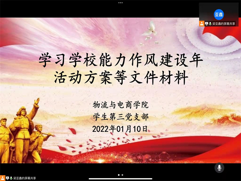 为推动组织生活会进一步发展,做好民主评议党员工作打牢思想基础,williamhill英国学生第三党支部于1月10日晚上19:00通过腾讯会议召开专题组织生活会学习研讨会议。会议到会正式党员17名,预备党员42名,支部书记胡可鑫老师、组织委员杨雪老师参与本次会议。