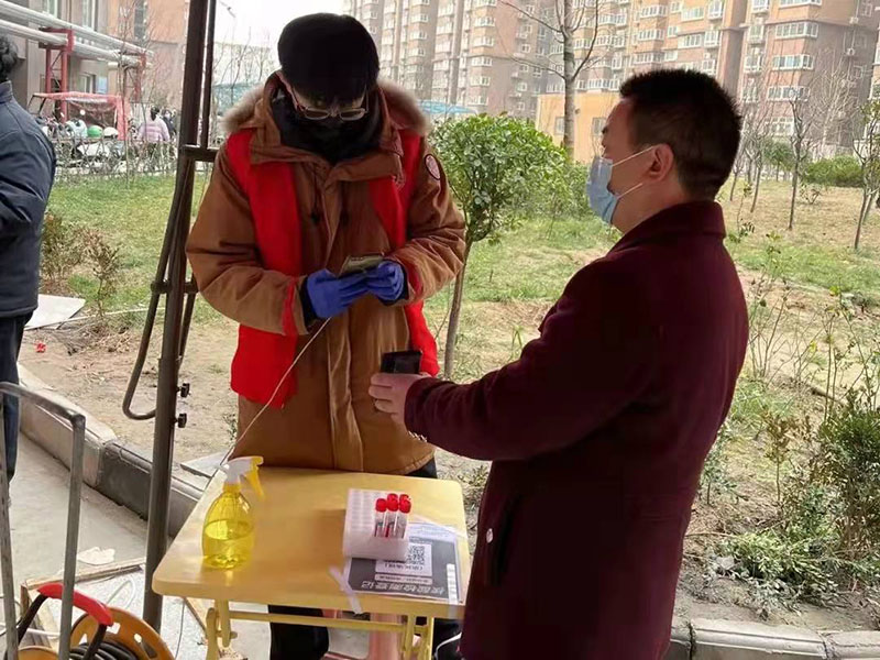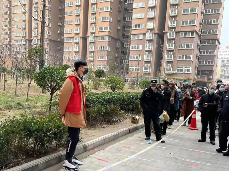 为有效遏制疫情扩散,配合街道疫情防控需要,在寒假期间,williamhill英国第三党支部20电商(升本)01班预备党员冉子凡同学参加了金水区丰庆路街道办事处丰庆佳苑社区核酸检测点志愿服务,协助医护人员开展全员核酸检测工作。凛冬之下,他与医护人员们一起完成了维持排队秩序、指导群众核酸检测扫码登记、进行十人数据录入分组、身份证检录、试剂条码确认粘贴、政策解答宣传、对外籍人员翻译、老幼病残孕绿色通道服务等防疫工作,为防疫贡献了自己的一份力量。在冉子凡同学的协助下,当天共完成检测人员4362人,有效保证了核酸检测工作的高效高质推进。