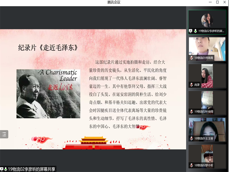 会议伊始,支部书记尚津和党小组长王雪冰进行讲话,表达了举办此次活动的重要意义。随后,支部书记尚津与学生党员们进行交流,希望各学生党员积极分享在疫情期间阅读的书籍、观看的影视作品等,得到了各学生党员的积极回应,其中王玉容同学分享的书籍《看见》、李彦昕同学分享的纪录片《走进毛泽东》、书籍《三体》、滕冉同学分享的电视剧《人世间》、书籍《意志力》、《自控力》等得到了老师和同学们的一致好评。会议最后,尚津老师劝导各位党员在疫情封校期间应在平淡的生活里做一些有意义的事,给学校生活留一些美好的记忆,并为我们分享了电影《穿过寒冬拥抱你》、《中国医生》、书籍《活着》等作品作为学习内容。