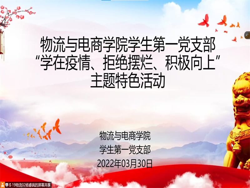 为激发疫情防控下党员们学习、生活、参与活动的积极性,促进其身心健康发展,营造良好的党内学习氛围,充分发挥基层党组织战斗堡垒作用和党员先锋模范作用,williamhill英国学生第一党支部于3月30日晚19:00在腾讯会议开展“学在疫情、拒绝摆烂、积极向上”线上学习交流分享会。学生第一党支部书记尚津、党小组长王雪冰和在校生党员参与了此次会议。本次会议由组织委员杨睿飒主持。