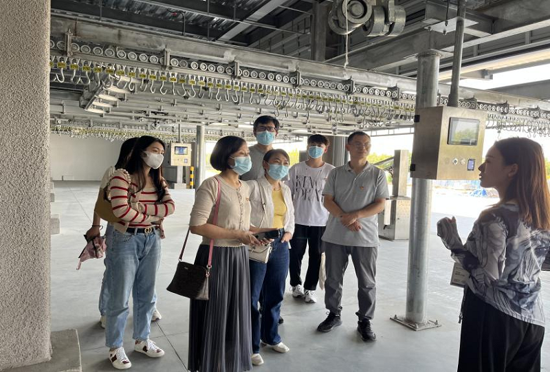 最后,我院党员同志在园区领导带领下到园区的大数据办公中心、蔬菜水果区、肉类滑轨分割区,冷库仓储区,冷链物流区等逐一进行了考察学习。