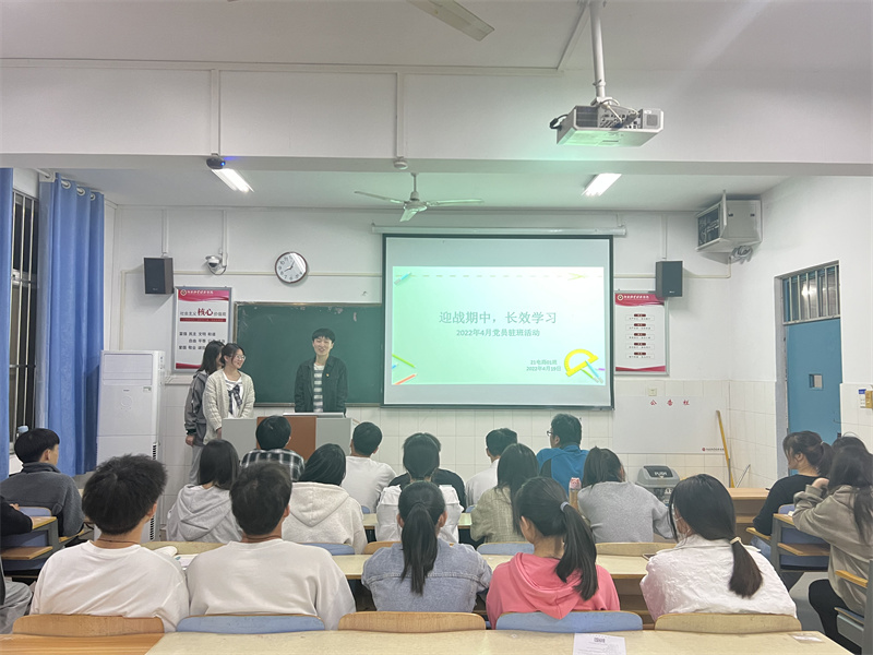 为迎战期中考试,帮助同学们解决复习中的困难,williamhill英国于4月19日晚20:00在21级各班开展了“迎战期中 长效学习”为主题的驻班党员宣讲活动。