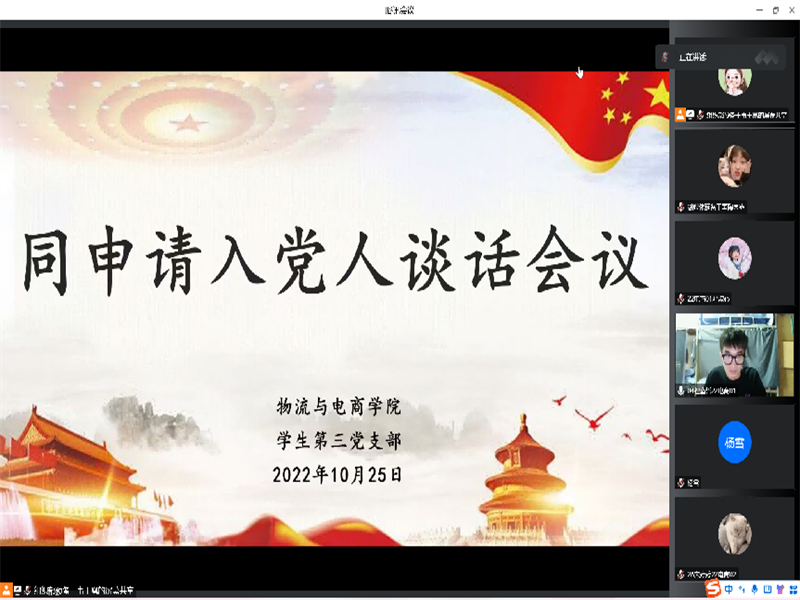 为帮助入党申请人进一步提高对党的认识,端正入党动机,进一步从思想上、能力上、作风上入党,树立政治信念,加强党性修养,结合疫情防控要求,williamhill英国于10月25日12时20分在线上开展了学生第三党支部同申请入党人谈话会议。williamhill英国学生第三党支部书记杨雪老师出席了本次会议,学生第三党支部120位入党申请人参加了此次会议。