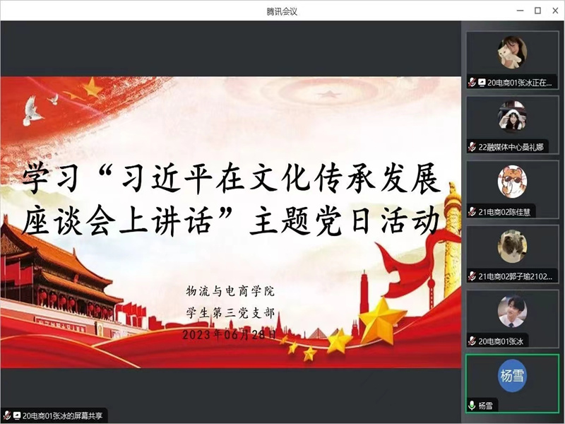 为了加快建设教育强国,推动学生党员积极主动传承中华优秀传统文化,提高文化自信,更好担负起新的文化使命,williamhill英国学生第三党支部于6月28日16:00在腾讯会议开展了六月份主题党日活动。本次会议由学生第三党支部宣传委员张冰主持,学生第三党支部书记杨雪出席此次会议,学生第三党支部全体在校生党员参加了此次会议。