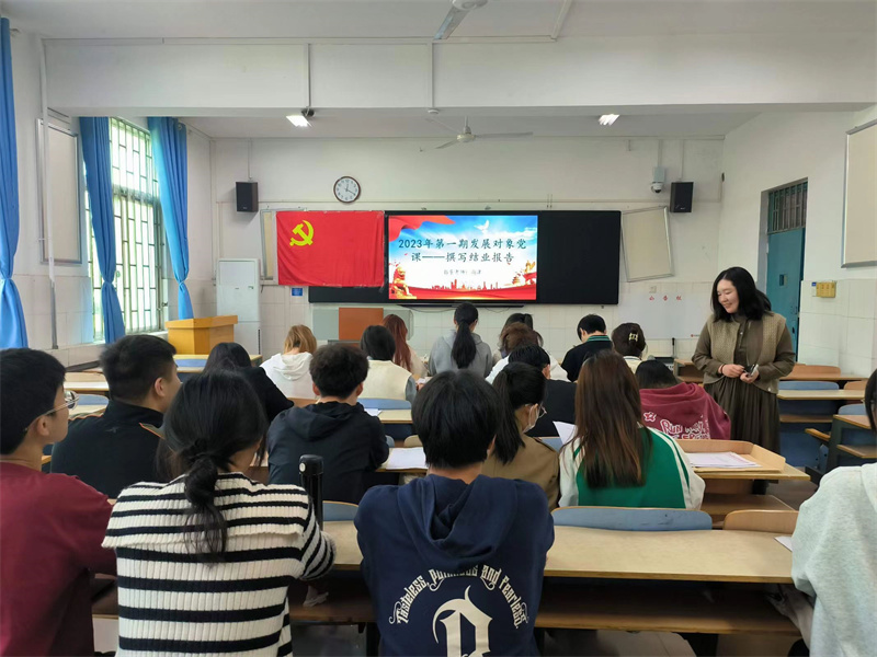 为了使全体党的发展对象深入学习党的知识和精神,进一步端正入党动机,自觉加强思想理论修养,增强政治意识和责任意识,增强明辨是非的能力,以更加坚定的信念和信心加入中国共产党,williamhill英国于4月27日中午12:20在教学楼B116开展了2023年第一期党的发展对象党课第四讲——撰写结业报告。团委副书记尚津出席了本次党课,全体党的发展对象参加了本次党课。