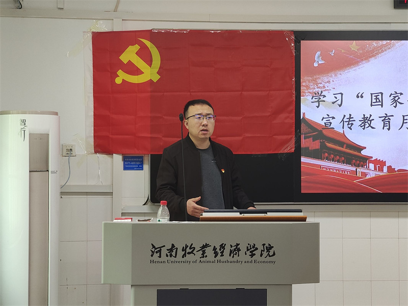 会议伊始,华宇同志以自己对本次主题党日活动学习内容“扎实抓好主题教育,为奋进新征程凝心助力”和“国家安全教育日暨保密宣传教育月”的解读为引子,为本次主题党日活动进行了领读。随后,梁亚鑫、曹帅阳、刘丹阳等在校生党员代表也发表了自己对习近平总书记在主题教育工作会议重要讲话的深度思考,他们认为在校生党员全面学习贯彻习近平新时代中国特色社会主义思想是很有必要的。会议最后,申老师作出总结发言,申老师指出习近平新时代中国特色社会主义思想对在校生党员有重大意义,接着又对全体在校生党员发出殷切期望,希望学生党员能够在生活中学习贯彻习近平新时代中国特色社会主义思想,并积极学习国家安全知识学习,为奋进新征程凝心助力。