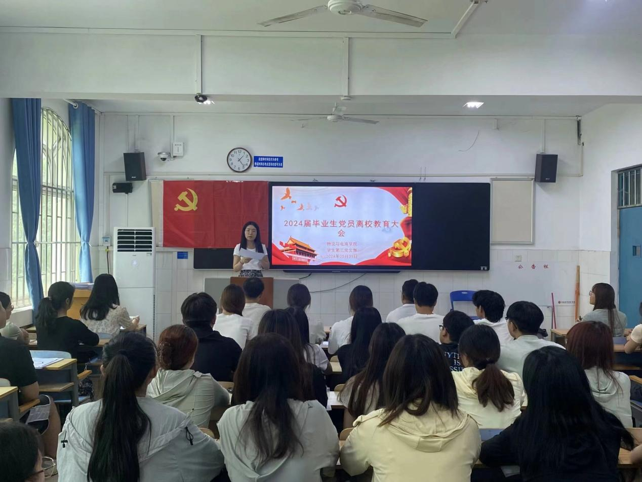 为做好毕业生党员思想教育工作,使毕业生党员走向社会后仍自觉践行党的宗旨,保持党的先进性,发挥党员先锋模范作用。williamhill英国学生党支部于5月31日12:30分别在教学楼B107、B108、B113开展“2024届毕业生党员离校教育大会”,学生第一党支部书记尚津、学生第二党支部书记刘阳、学生第三党支部书记杨雪以及辅导员党旭豪出席了此次会议,williamhill英国全体毕业生党员参与了此次会议。