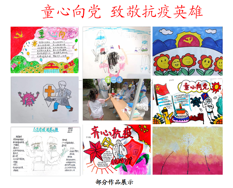 本次活动共收到我院在职教职工14周岁以下子女作品27件,类型涵盖绘画、手抄报等,孩子们用手中的画笔表达对党的热爱、对抗疫英雄的敬佩。活动既陶冶了孩子们的高雅艺术情操,又把爱党爱国的情结根植于孩子们心灵,从小听党话、永远跟党走,长大成为新时代社会主义事业的建设者和接班人。
