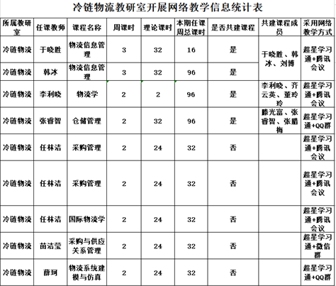 冷链物流教研室开展网络教学信息统计表